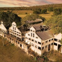Patrimônio Vivo: As ruínas imponentes e os galpões preservam a memória da importância econômica e cultural da Barranco Vermelho para a região do Pantanal.